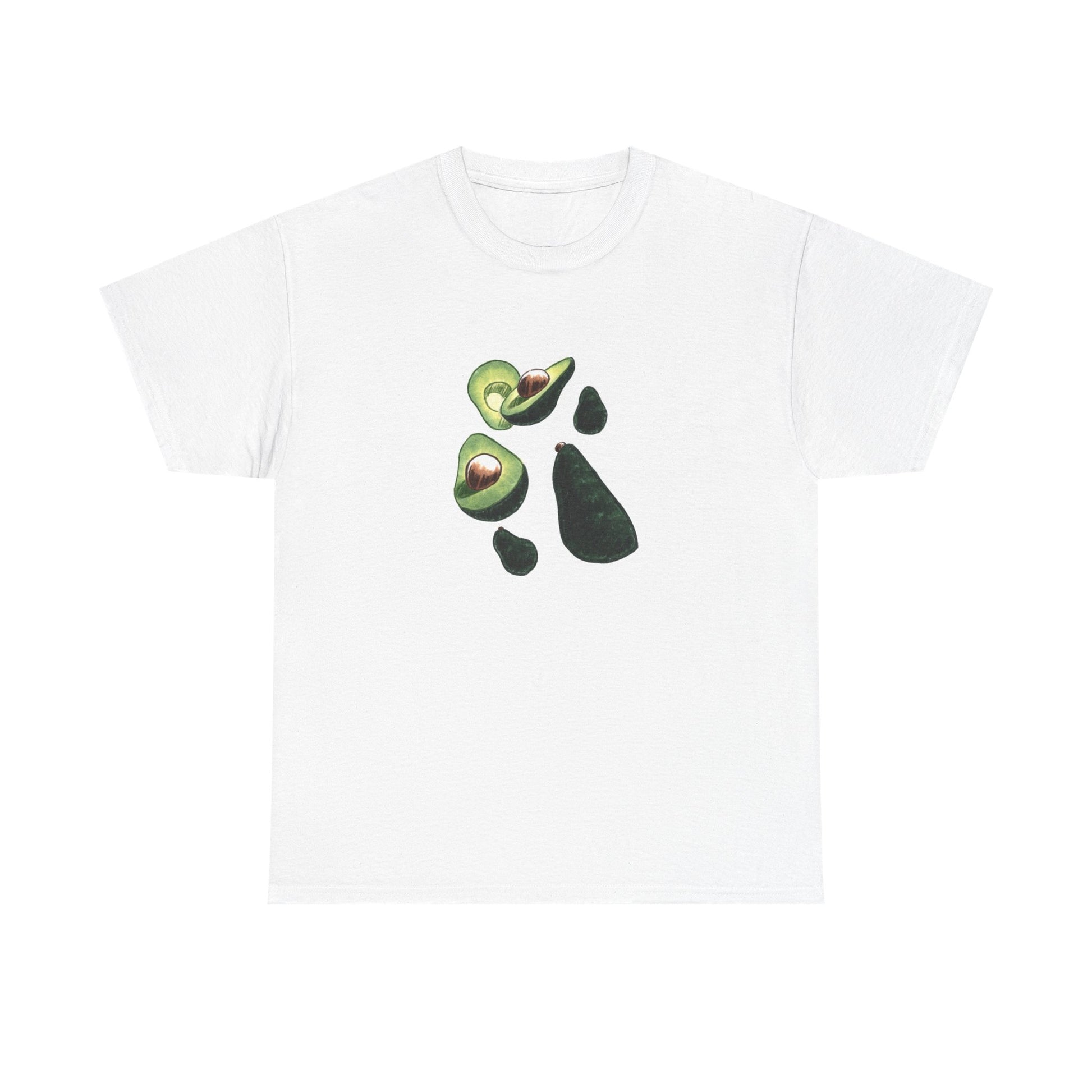 Bright, playful, and a little cheeky — this cotton tee brings avocados to life. Sliced and whole avocados tumble across the front in a hand-drawn color illustration that feels fresh and joyful. The shirt sits comfortably on the body with a classic crew neckline and relaxed fit, making it an easy layer for weekend farmer’s markets, brunch runs, or late-night taco experiments. Wear it with rolled sleeves and high-waist jeans, or pair with a denim jacket for a casual, food-lover’s look that sparks conversations. The textured “Natural” option carries tiny flecks that add personality, while the solid colors keep the print crisp and vibrant. Built for everyday use and printed with techniques that preserve detail, this tee ages in character, not in stretch.